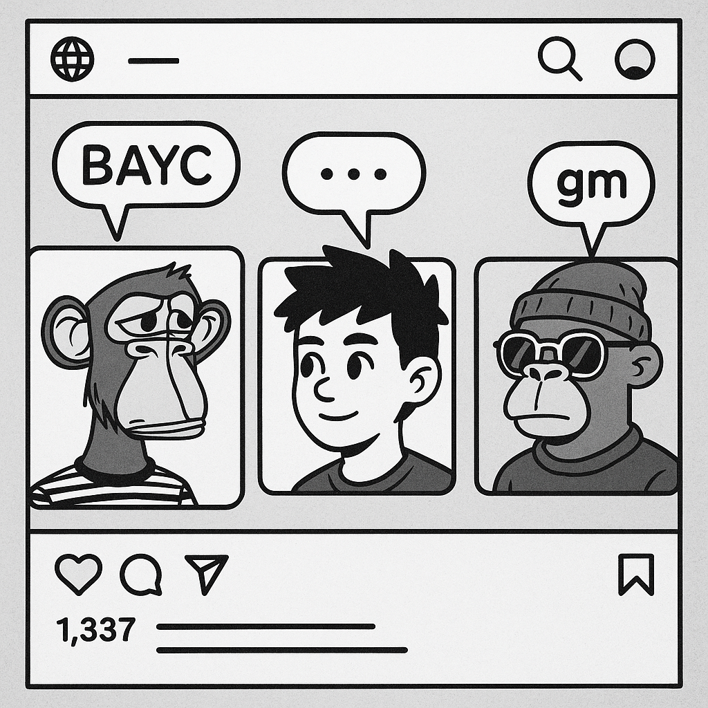 오프라인에서 우리는 옷, 헤어스타일, 액세서리로 자신을 표현한다. 온라인에서는 프로필 이미지가 그 역할을 맡는다. PFP NFT는 “나는 이 집단의 일원이며, 이 세계관을 지지한다”는 강력한 메시지를 발신한다.